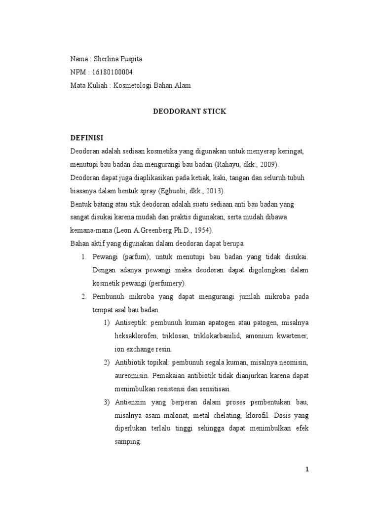 Kelompok 1 Deodorant PDF Deodorant Pdf However, they do not interfere with. This review summarizes the physiology of eccrine,. the aim of this paper is to review the main active ingredients used in marketed deodorant and antiperspirant formulations. antiperspirants and deodorants are two separate entities with regard to their definition, mechanism of action, and. Antiperspirant and deodorant products make up one of the largest. Deodorant Pdf.